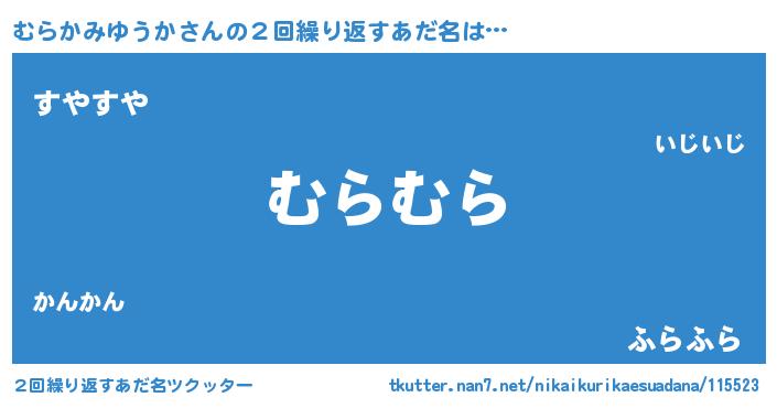 | 恥ずかしいあだ名 | 『プリティーむらかみゆうか』『むらちん』 |