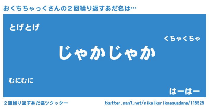 | 意味不明あだ名 | 『住所不定無職おくちちゃっく(56歳)』 |