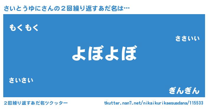 | ヘコむあだ名 | 『さいとうゆに(笑)』『なまこ酢』 |
