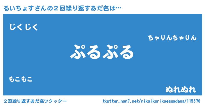 | 女子向けラノベタイトル風あだ名 | 『るいちょす恋絵巻』『闇のるいちょす』 |
