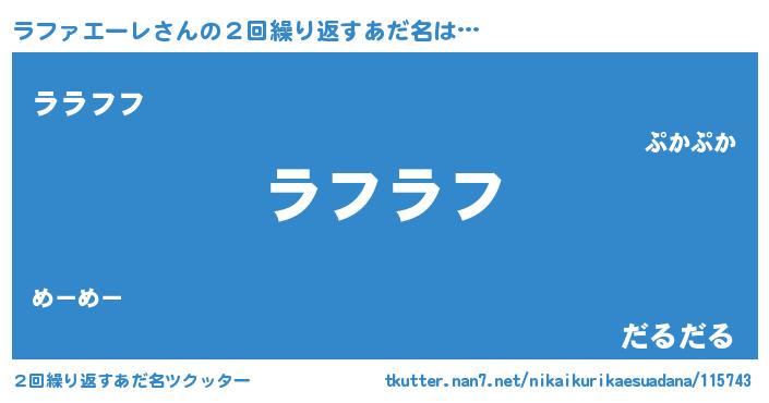 | ヘコむあだ名 | 『ラフもー』『豆乳』『ラフ太郎』 |