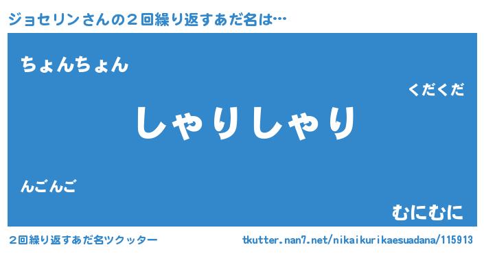 | 意味不明あだ名 | 『住所不定無職ジョセリン(13歳)』 |