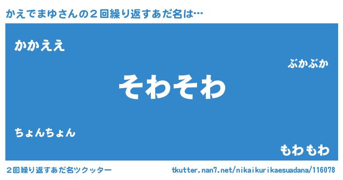 | 意味不明あだ名 | 『住所不定無職かえでまゆ(98歳)』 |