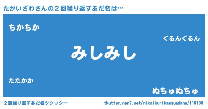 | 意味不明あだ名 | 『自称たかいざわ』『永久保存たかいざわ』 |