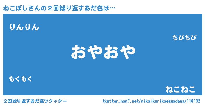 | ヘコむあだ名 | 『ねこを』『ねこにー』『なまこ酢』 |