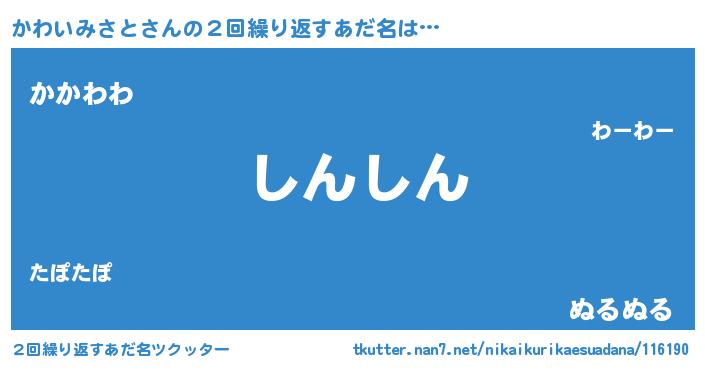 | ヘコむあだ名 | 『なまこ酢』『かわを』『かわふぇ~』 |