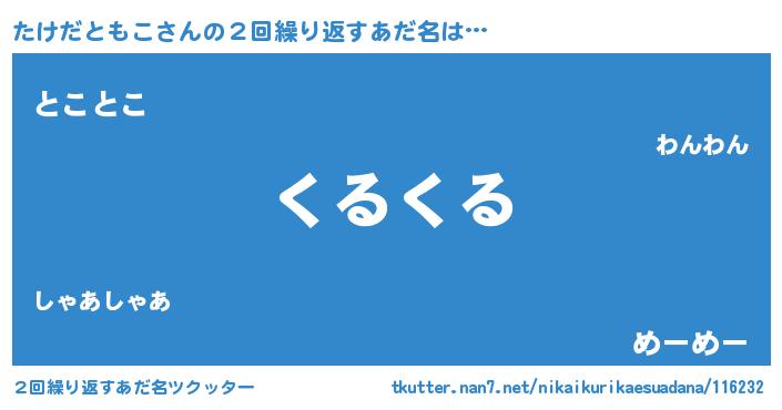 | ヘコむあだ名 | 『たけだともこ(爆)』『たけっふぃ~』 |