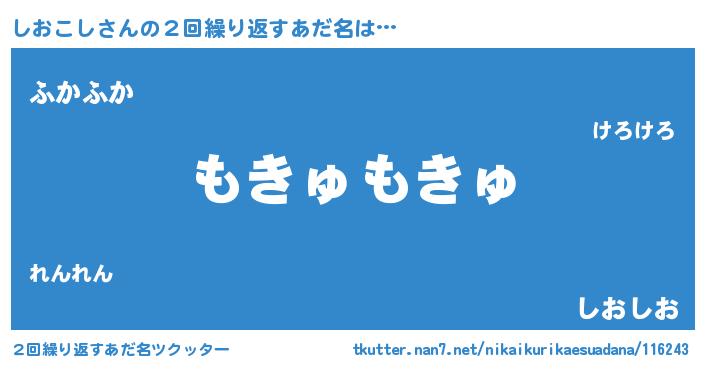 | ヘコむあだ名 | 『しおもー』『しおこし(震え声)』 |