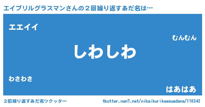 | 男性向けラノベタイトル風あだ名 | 『この素晴らしい世界にエイプリルグラスマンを!』 |
