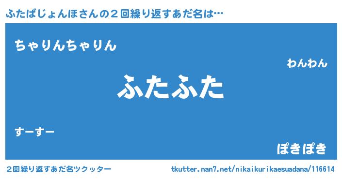 | 意味不明あだ名 | 『ペロリンふたばじょんほ』 |