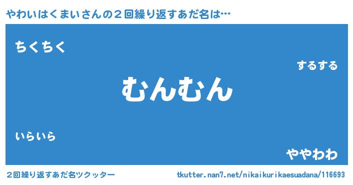 | 欧米人風あだ名 | 『ケンブリッジやわいはくまい』 |