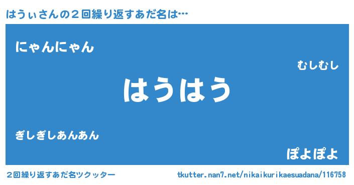 | 男性向けラノベタイトル風あだ名 | 『はうぃの憂鬱』『魔法科高校のはうぃ』 |