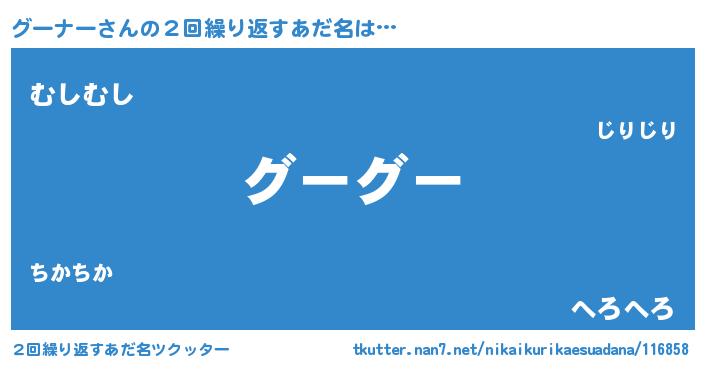 | 意味不明あだ名 | 『ペロリングーナー』『自称グーナー』 |