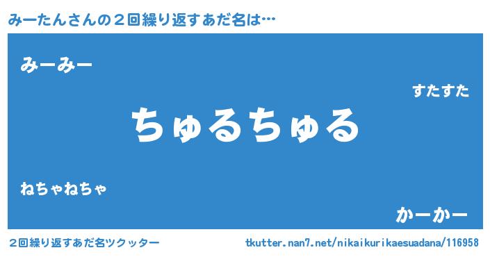 | 欧米人風あだ名 | 『みーたん・ステッグマイヤー』 |