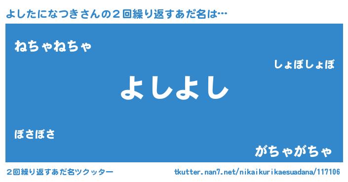 | ポケモン風あだ名 | 『ヨシチュウ』『ヒヨシタニナツキ』 |