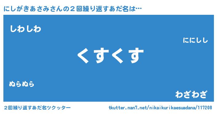 | ヘコむあだ名 | 『にしがきあさみ(震え声)』『豆乳』 |
