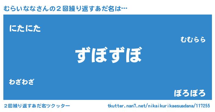 | 意味不明あだ名 | 『住所不定無職むらいなな(7歳)』 |
