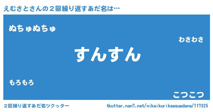 | 意味不明あだ名 | 『住所不定無職えむさと(4歳)』 |