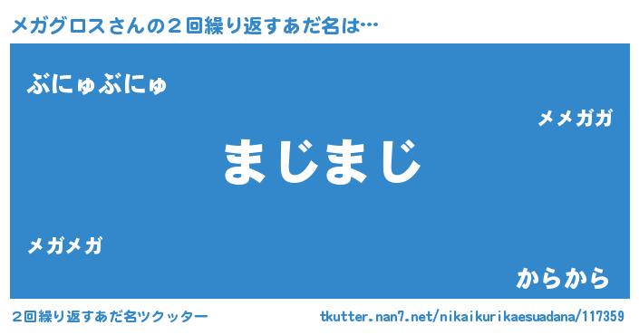 | 意味不明あだ名 | 『自称メガグロス』『永久保存メガグロス』 |