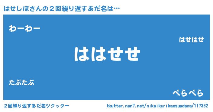 | ヒーロー風カッコイイあだ名 | 『ウルトラはせしほマン』『ネオハセシホ』 |