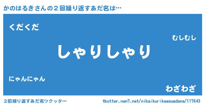| 意味不明あだ名 | 『住所不定無職かのはるき(43歳)』 |