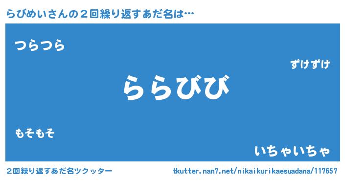 | 意味不明あだ名 | 『らびめいフォーエバー』『自称らびめい』 |