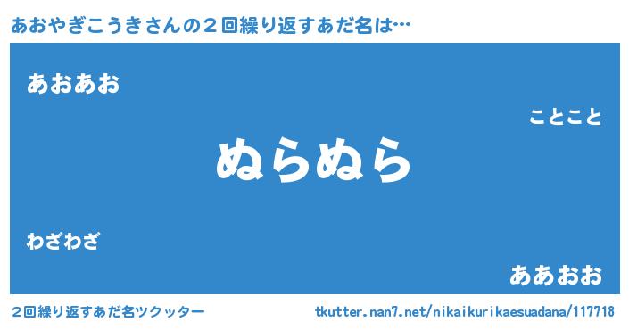 | 意味不明あだ名 | 『とにかく怪しいあおやぎこうき』 |
