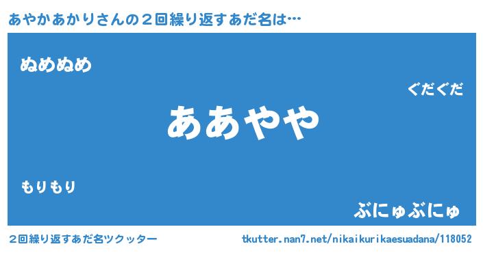 | ポケモン風あだ名 | 『アヤカダネ』『ヒアヤカアカリ』 |
