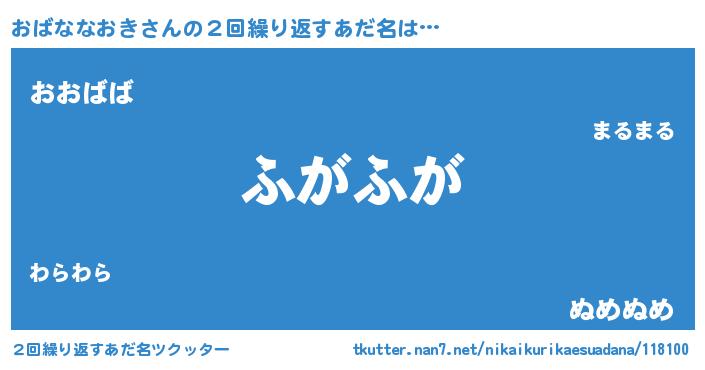 | 欧米人風あだ名 | 『アンジェラ・おばななおき』 |