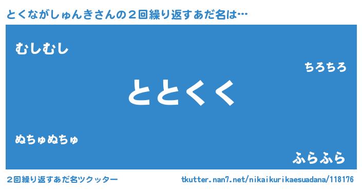 | 意味不明あだ名 | 『とくながしゅんきフォーエバー』 |
