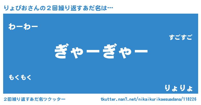 | 意味不明あだ名 | 『永久保存りょぴお』『ペロリンりょぴお』 |