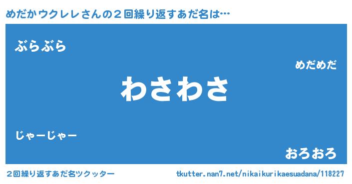 | 欧米人風あだ名 | 『トリンドルめだかウクレレ』 |