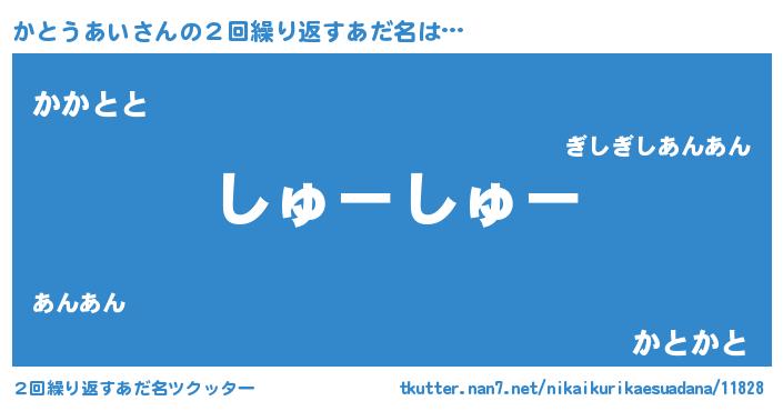 | 意味不明あだ名 | 『住所不定無職かとうあい(85歳)』 |