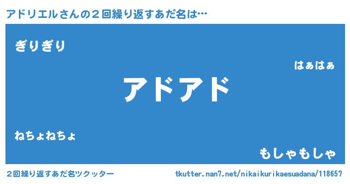 | ヒーロー風カッコイイあだ名 | 『スーパーアドリエル』『ネオアドリエル』 |