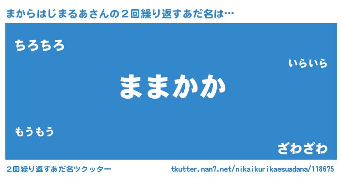 | 自動車の名前っぽいあだ名 | 『マクア』『フェマーカ』『マウディ』 |