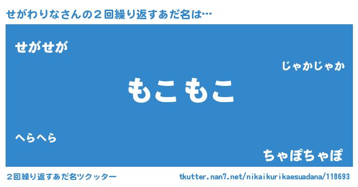 | 意味不明あだ名 | 『自称せがわりな』『ペロリンせがわりな』 |