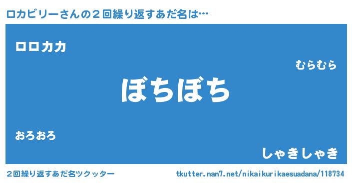 | 男性向けラノベタイトル風あだ名 | 『ノーゲーム・ノーロカビリー』 |