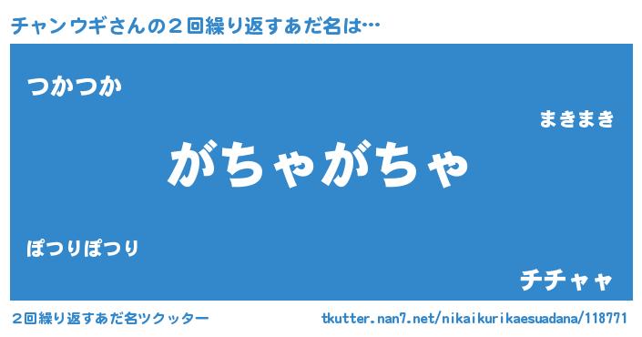 | 男性向けラノベタイトル風あだ名 | 『チャンウギという概念が存在しない退屈な世界 』 |
