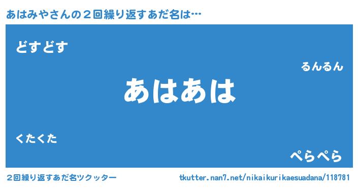 | 意味不明あだ名 | 『ペロリンあはみや』『永久保存あはみや』 |