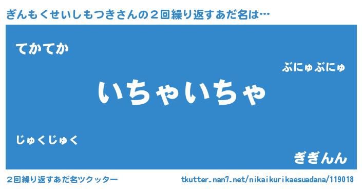 | 欧米人風あだ名 | 『ウサインぎんもくせいしもつき』 |