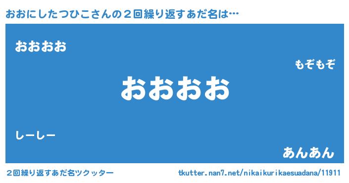 | 男性向けラノベタイトル風あだ名 | 『オオニシタツヒコアートオンライン』 |