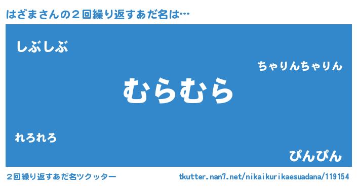 | 意味不明あだ名 | 『自称はざま』『住所不定無職はざま(5歳)』 |