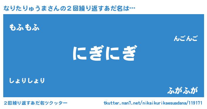 | 欧米人風あだ名 | 『ウサインなりたりゅうま』 |