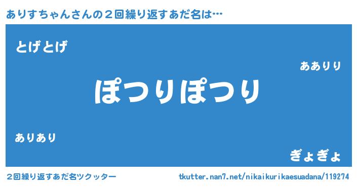 | ヒーロー風カッコイイあだ名 | 『天空の使者ありすちゃん』 |