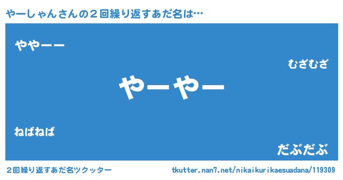 | 意味不明あだ名 | 『ペロリンやーしゃん』『自称やーしゃん』 |
