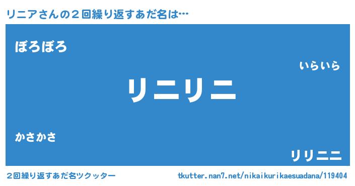 | ヘコむあだ名 | 『リニふぇ~』『豆乳』『リニお』 |