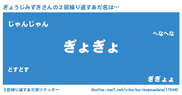| 男性向けラノベタイトル風あだ名 | 『ギョウジミズキアートオンライン』 |