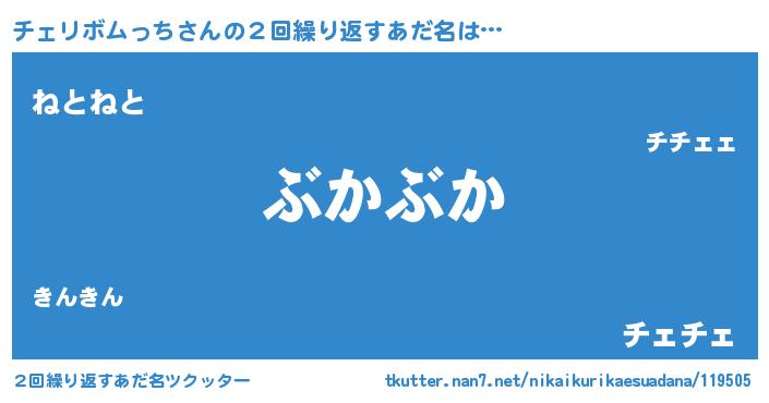 | ポケモン風あだ名 | 『チックウザ』『ヒチェリボムッチ』 |