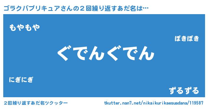 | 意味不明あだ名 | 『永久保存ゴラクバプリキュア』 |