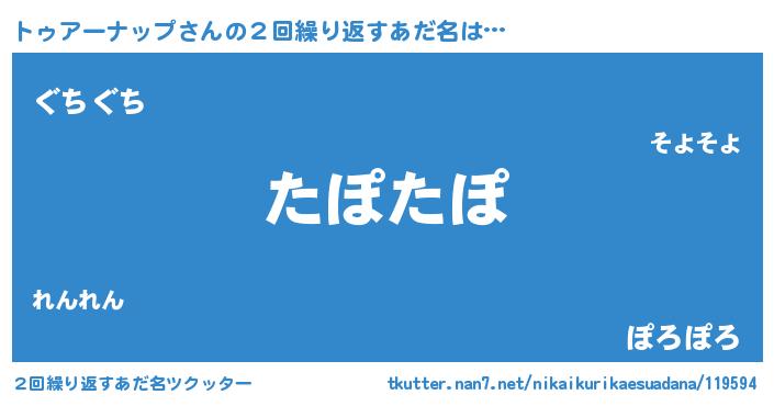 | 意味不明あだ名 | 『永久保存トゥアーナップ』 |